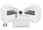 Премиальная итальянская мебель для сада и уличных кафе Rattan Premium 4 от итальянского производителя B:Rattan, включает большой 2-х местный диван, 2 кресла и 1 кофейный столик. Пластиковый комплект порадует любителей плетеной мебели своей фактурой в стиле ротанг и прочностью: максимальная нагрузка на диван и кресло — до 200 кг, на столик — до 100 кг.