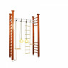 Основой выступает металлическая шведская стенка, которая имеет антикоррозийное покрытие и обладает повышенной устойчивостью к интенсивным нагрузкам. В комплектации также предусмотрены гимнастические кольца, тарзанка, веревочная лестница и канатный лаз. По желанию можно установить и дополнительное оборудование.