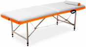 Благодаря простоте конструкции и отсутствию особых условий обслуживания, данный стол может применяться в домашних условиях. Данная модель косметологического стола представляет собой двухсекционную конструкцию, обустроенную на каркасе из влагостойкой фанеры. Для обивки поверхности стола используется высококачественная искусственная кожа, обладающая повышенной износостойкостью и прочностью. Она легко чистится без необходимости применения специальных средств. В качестве наполнителя служит экологически чистый полиуретан. Благодаря использованию алюминиевых ножек, разработчикам удалось максимально сократить вес конструкции, при этом сохранив высокую динамическую нагрузку до 200 кг. Скругленные углы добавляют кспециалисту удобства при работе и уменьшают риск износа покрытия на углах.