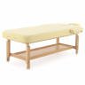 Рама модели из натурального бука выдерживает нагрузку до 300 кг. Гарантия на нее действует 1 год. Под ложем располагается широкая полка для разнообразных аксессуаров, полотенец и т.д., изготовленная из того же материала, что и рама. А на одном его краю находится дополнительная секция с вырезом для лица.