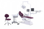 Поворотный гидроблок оснащен поворотной керамической чашей плевательницы, бутылкой для подачи дистиллированной воды, выносной блок коммуникаций.